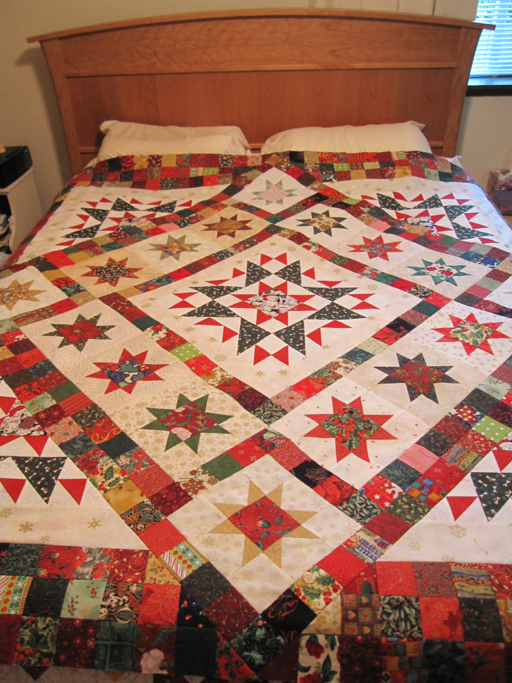 On the quilting front, I've been busy--yup, another new project. This one i can even share here. A new Christmas quilt is in the works. There was an unfortunate laundry adventure with the Christmas quilt that was completed last year. subsequent efforts to fixture problem only made it worse. Lesson learned, NEVER, EVER use a solid red flannel for backing fabric. No matter how many times it is washed, won't be enough.